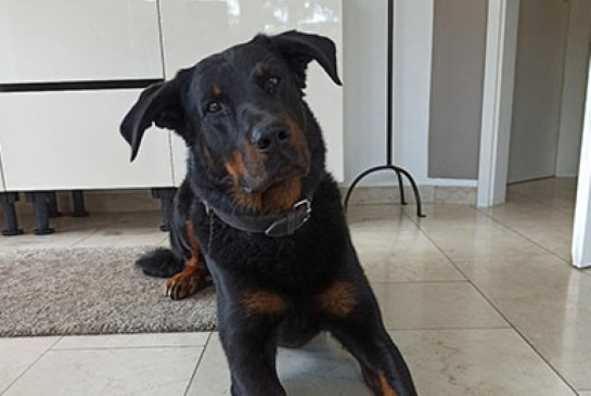 Er lebt mit einer Beauceronhündin zusammen und ist allgemein mit Artgenossen aller Art und Geschlecht verträglich.